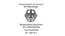 On November 17th 2015 the DAR Solo received its " Musterzulassungsschein für Luftsportgeräte " (type certificate)